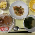 献立 ケチャップ炒めポテトサラダわかめスープパン牛乳紅茶果物