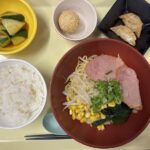 献立 みそラーメン揚げ餃子ピリ辛胡瓜ご飯ごま団子