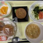 献立 ハムカツ和風サラダたまごスープパン牛乳紅茶果物