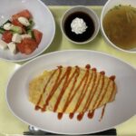 献立 オムライストマトとチーズのサラダコンソメスープコーヒーゼリー