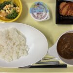 献立 ハヤシライスエビカツブロッコリーと卵のサラダレアチーズケーキ