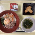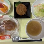 献立 ハムカツ野菜サラダオニオンスープパン牛乳紅茶果物