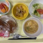 献立 ジャーマンポテト野菜サラダたまごスープパン果物牛乳紅茶