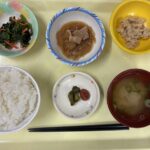 献立 豚肉の甘辛煮ほうれん草のピーナッツ和え卯の花味噌汁ご飯漬物