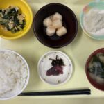 献立 里芋のそぼろあんかけチンゲン菜とゆばの煮物じゃこおろし味噌汁ご飯漬物