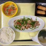 献立 鶏肉のピリ辛炒めシュウマイチョレギサラダ中華スープご飯