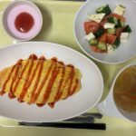 献立 オムライストマトとチーズのサラダコンソメスープいちごババロア