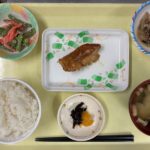 献立 幽庵焼きれんこんそぼろいんげんのマヨ和え味噌汁ご飯漬物