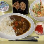 献立 カレーライス鶏肉のからあげ野菜サラダレアチーズケーキ