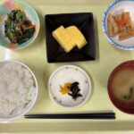 献立 玉子焼きさつま揚げの煮物小松菜のじゃこ和え味噌汁ご飯漬物