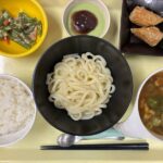 献立 カレーうどんちくわの磯辺揚げいんげんのマヨ和えご飯抹茶ババロア