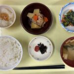 献立 肉じゃがほうれん草のごま和えなめたけおろし味噌汁ご飯漬物