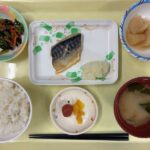 献立 鯖の塩焼き長芋の煮物小松菜のおかか和え味噌汁ご飯漬物