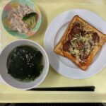 献立 ごぼうサラダわかめスープミートボールトースト牛乳紅茶