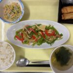 献立 チンジャオロース春巻拌三糸中華スープご飯