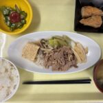 献立 すき焼き風煮ちくわの磯辺揚げオクラの梅和え味噌汁ご飯
