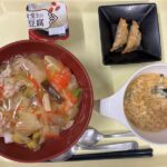 献立 中華丼揚げ餃子中華スープ杏仁豆腐