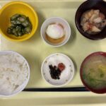 献立 筑前煮オクラのおかか和え温泉卵味噌汁ご飯漬物